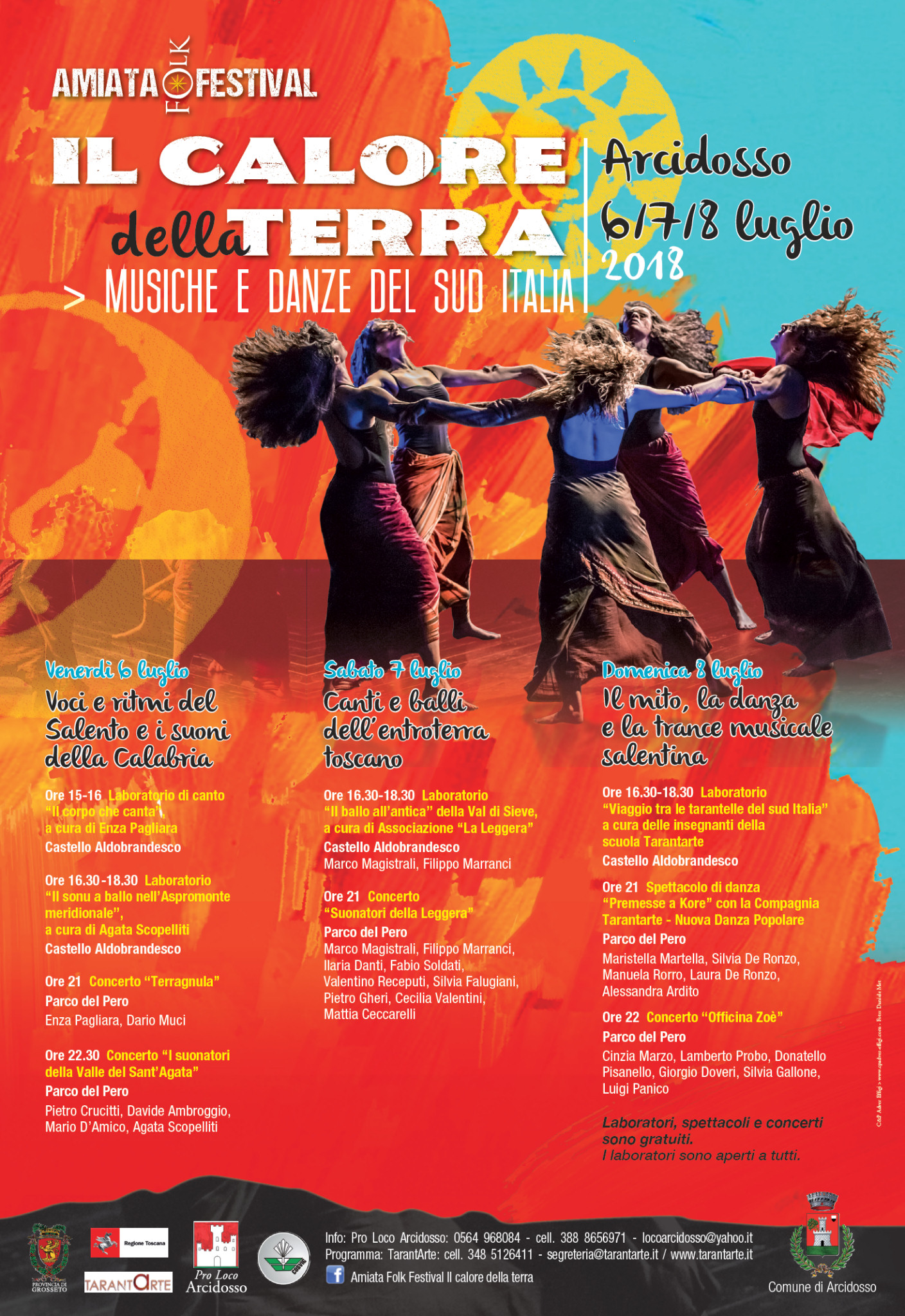 A Arcidosso (GR), tutto pronto per il festival “Il calore della terra”: dal 6 all’8 luglio torna l’Amiata Folk Festival prende il via il calendario all’insegna delle contaminazioni che porta nel cuore della montagna toscana musiche e danze del sud Italia.