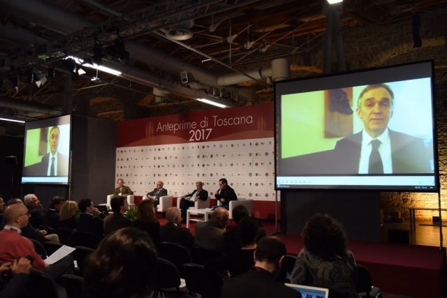 "Auguri di buon affari a tutti, agli imprenditori e alla Toscana". Perché il vino è la Toscana. Anche il presidente Enrico Rossi interviene, con una videochiamata skype, alla presentazione di Anteprime 2017, l’evento che parte dalla Fortezza da Basso di Firenze, in contemporanea con il Buy Wine, e proseguirà poi nei territori alla scoperta dei sedici consorzi vitivinicoli della regione.