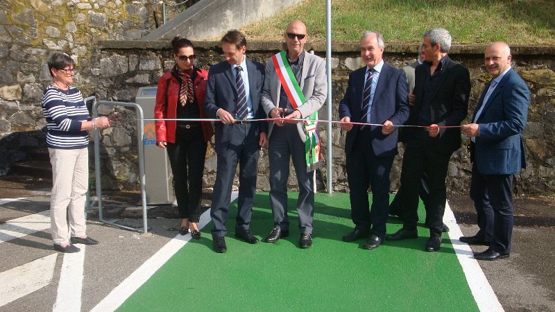A tagliare il nastro, o meglio a effettuare il primo pieno di elettricità dell’electric drive, sono stati il Sindaco di Pomarance Loris Martignoni, l’Assessore Ilaria Bacci, il Responsabile Enel Distribuzione Zona Pisa e Livorno Fabio Pasquini, il referente Enel mobilità elettrica Toscana Umbria Fabio Mugnai e il Responsabile Geotermia Massimo Montemaggi.