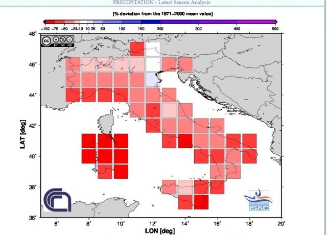 Per l’Italia è stata la seconda primavera più calda dal 1800 ad oggi, con una anomalia di +1.9°C rispetto alla media del periodo di riferimento 1971-2000, preceduta solo dalla primavera 2007 (+2.2°C). I singoli mesi hanno fatto registrare tutti e tre anomalie positive pari a +1.6°C per aprile e maggio (17-esimo e 14-esimo più caldo dal 1800 ad oggi, rispettivamente) e +2.5°C per marzo (quarto più caldo di sempre).