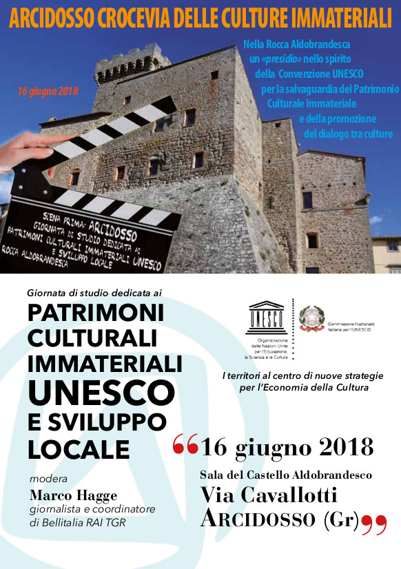 Un paese di 4250 abitanti, Arcidosso, alle pendici del Monte Labbro e la vetta del Monte Amiata, e che da tempo è attivo nella promozione e riscoperta delle tradizioni locali, ha organizzato un’esclusiva manifestazione mirata alla necessità di approfondire la conoscenza del patrimonio culturale immateriale. L’evento, che ha il coordinamento scientifico della Fondazione Santagata per l’Economia della Cultura, costituita su impulso del Centro Studi Silvia Santagata-EBLA, ente associato alla Cattedra UNESCO in Sviluppo Sostenibile e Gestione del Territorio dell’Università di Torino e il sostegno della Presidenza del Consiglio Regionale della Toscana, è dedicato al tema: «Patrimoni Culturali Immateriali UNESCO e Sviluppo Locale». L’Agenzia dell’ONU che tutela e promuove la cultura tradizionale dell’Umanità con una specifica «Convenzione per la Salvaguardia del Patrimonio Culturale Immateriale», approvata il 17 ottobre 2003 dalla Conferenza Generale, pone particolare attenzione sugli usi, il saper fare, le conoscenze tradizionali, i costumi e rituali sociali, le lingue tramandate di generazione in generazione. L’evento farà da apripista ai territori che sono al centro di nuove strategie dell’Economia della Cultura. Saranno presentati «Casi di studio» di territori che hanno affrontato il cambio di paradigma individuato dall’Unesco al Forum di Firenze del 2014: la «culture economy». Partita dall’ evento «Amiata folk festival: Il calore della terra», festival del racconto orale e di danze etniche, i cui preparativi prevedono, il 6/7/8 luglio, laboratori, spettacoli e concerti che vedono oggi protagonisti alcuni dei massimi esponenti della musica popolare, che potrebbero, in futuro, provenire dalle periferie del mondo, questa nuova iniziativa farà, appunto,  da prologo alla rassegna di balli  più svariati risalenti a culture diverse dalla nostra penisola. Si vogliono, in questa circostanza, stimolare azioni propedeutiche nella definizione di un punto di riferimento permanente e un osservatorio privilegiato del bene immateriale che tramanda le tradizioni per evolverle in un cammino condiviso da organizzazioni e professionisti dello sviluppo locale e del turismo, istituzioni culturali, autorità locali, regionali e nazionali. Iniziativa apprezzata e vista con estremo interesse dal segretariato generale MIBACT, referente per l’applicazione della Convenzione UNESCO per la Salvaguardia del Patrimonio Culturale Immateriale (2003) e punto di contatto nazionale per l’Applicazione della Convenzione UNESCO per la Protezione e Promozione della Diversità delle Espressioni Culturali (2005) e dalla stessa CNI UNESCO che ha concesso il patrocinio.