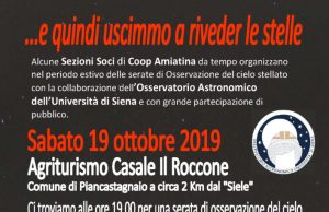 L’appuntamento è fissato per sabato 19 ottobre alle ore 19.00 presso l’Agriturismo Casale “Il Roccone” a Piancastagnaio, a circa due km dal “Siele”...continua