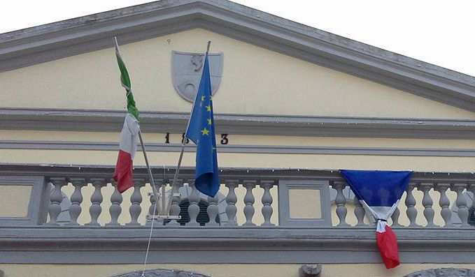 A Cecina sul balcone del Comune Vecchio le bandiere italiana ed europea a lutto accanto a quella francese. Così come a Rosignano Marittimo, dove l’amministrazione Comunale "si unisce al dolore della Francia e del mondo esprimendo la propria vicinanza ai famigliari delle vittime" e sono a mezz’asta le bandiere della sede comunale del castello.