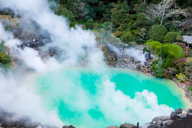 Si trova lì la più elevata concentrazione di impianti termali del Sol Levante, che da quelle parti si chiamano “onsen”.