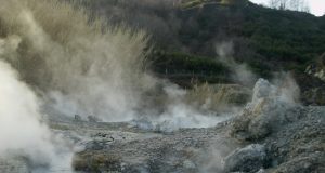Sbuffi di fumo che escono dal terreno, esplosioni, odore di zolfo.