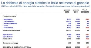 Ancora in diminuzione la produzione idroelettrica: -29,2% sul gennaio 2015 e -46% rispetto al gennaio 2014....
