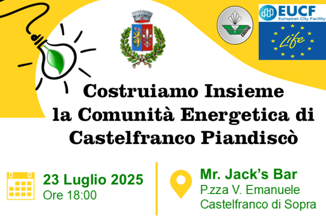 📢 L’Amministrazione Comunale di Castelfranco Piandiscò, con il supporto di Co.Svi.G. Scrl, organizza l’incontro pubblico “Costruiamo Insieme la Comunità Energetica di Castelfranco Piandiscò”, in programma mercoledì 23 Luglio alle ore 18:00 presso Mr. Jack’s Bar a Castelfranco di Sopra (AR).