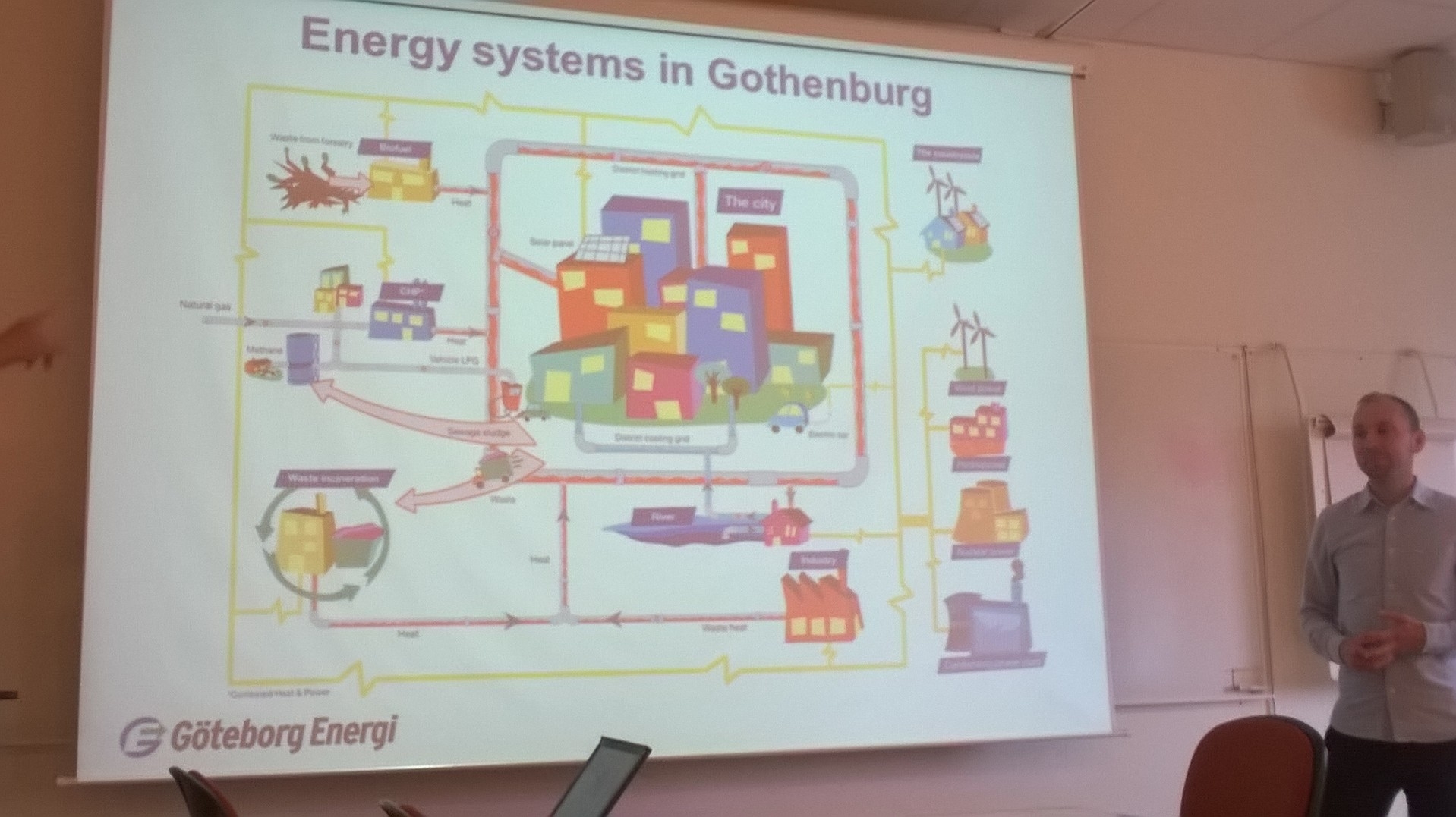 Göteborg Energi -la più grande società energetica municipale di Svezia- e il Comune di Göteborg coordinano il più grande progetto europeo nell’ambito del programma Intelligent Energy Europe della precedente programmazione dei fondi europei 2007-2013, denominato CELSIUS. Questo progetto, che ha fornito l’occasione per organizzare la visita stessa poiché costituisce una delle azioni di progetto previste, dimostra e promuove l’integrazione di teleriscaldamento teleraffreddamento intelligenti. Quanto mostrato nel corso della visita, su teleriscaldamento e teleraffrescamento, sulle soluzioni di mercato, il funzionamento della rete nella città di Göteborg e le soluzioni tecnologiche più recenti, è stato di sicuro impatto per i partecipanti. Quanto ad oggi realizzato, ma il progetto ha un suo traguardo ideale al 2021 (400.esimo anniversario della fondazione della città), dimostra che è possibile ed economicamente sostenibile, oltre che ambientalmente ineludibile, un nuovo sistema energetico che coinvolga grandi realtà urbane, con effetti evidenti e positivi.