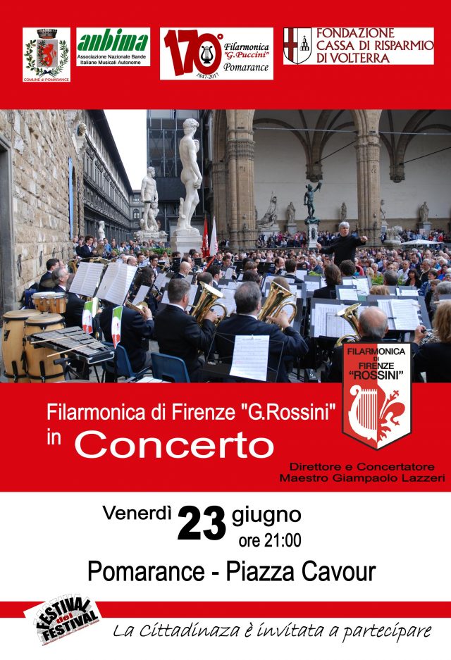 Venerdì 23 giugno 2017 ore 21.00 in piazza Cavour, in occasione dei festeggiamenti per il 170° della Filarmonica G.Puccini di Pomarance