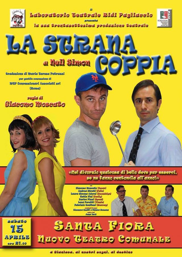 Sabato 15 aprile 2017 ore 21,00 “LA STRANA COPPIA” regia di Giacomo Moscato laboratorio teatrale Ridi Pagliaccio.