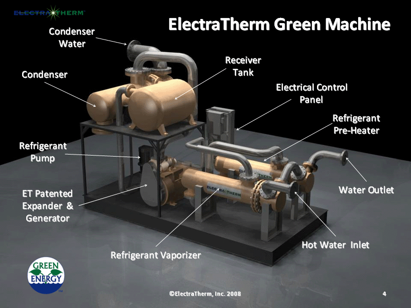 La Green Machine è un brevetto dell’ElectraTherm, Inc, azienda con sede a Reno, Nevada (USA), che lavora nell’ambito delle energie rinnovabili.
