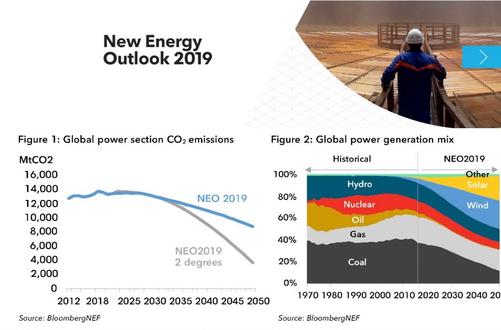 Secondo il New Energy Outlook 2019 (NEO) di Bloomberg NEF (BNEF) «Le forti riduzioni dei costi della tecnologia eolica e solare e della batteria si tradurranno entro il 2050 in una rete elettrica alimentata quasi per la metà dalle due fonti energetiche rinnovabili in rapida crescita»…continua