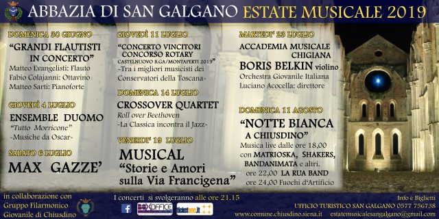 ECCO IL PROGRAMMA DELLA NUOVA ESTATE MUSICALE 2019 nella nostra favolosa Abbazia di San Galgano!