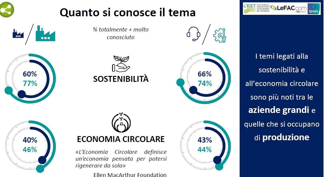 Che percezione hanno proprietari e manager delle principali aziende operanti in tutta Italia dell’economia circolare? Per rispondere a questa domanda il Criet (Centro di ricerca interuniversitario in economia del territorio) ha elaborato un apposito sondaggio in collaborazione con Ipsos Italia e LeFac – Tbs Group, per poi presentare i risultati dell’indagine nell’Auditorium dell’Università di Milano-Bicocca.