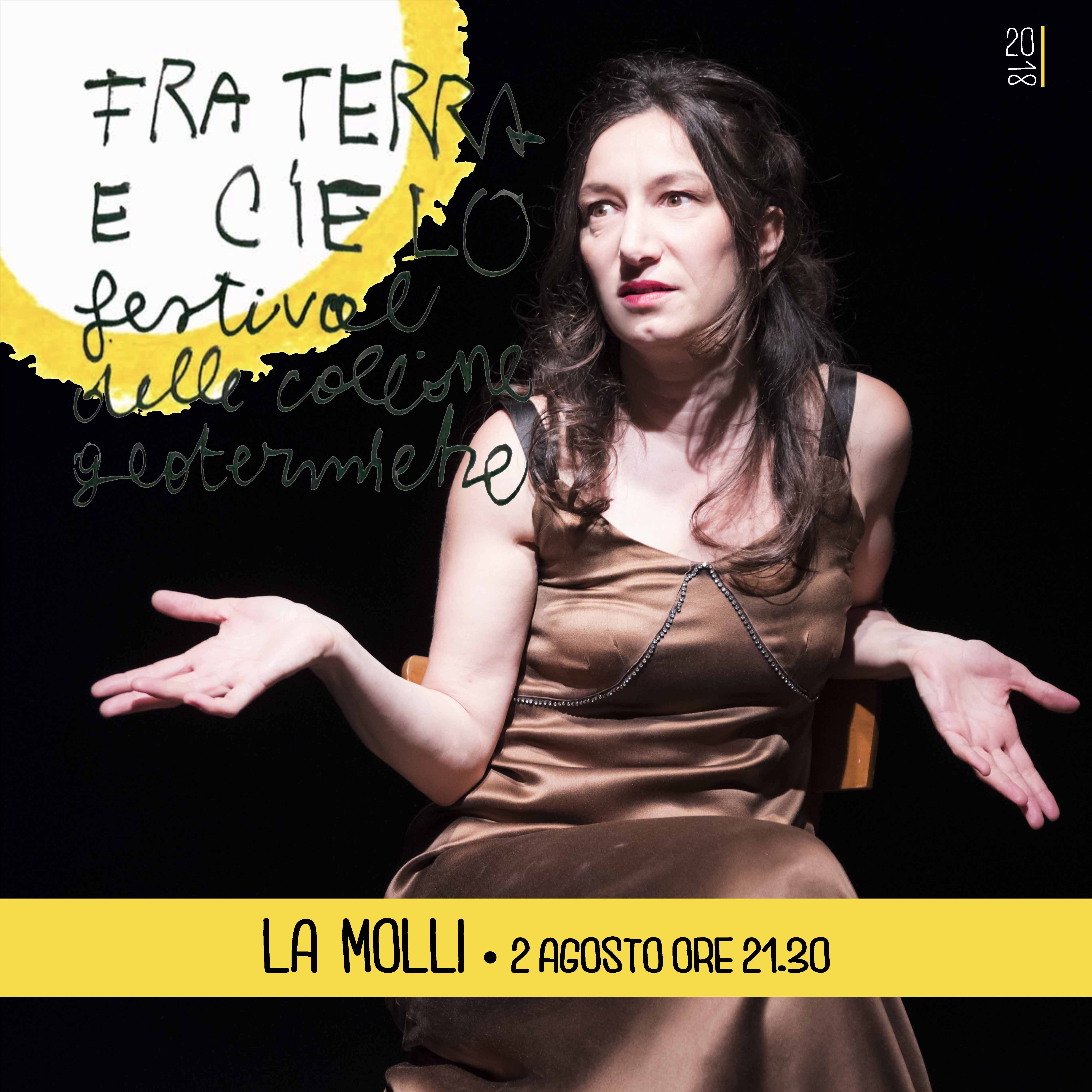 Fra terra e cielo – il Festival delle colline geotermiche organizzato da Officine Papage – prosegue con una tappa nel bel borgo di Montecerboli (Pomarance). Giovedì 2 agosto alle 21.30, presso la Piazza del Castello, andrà in scena lo spettacolo di Atir Teatro Ringhiera “LA MOLLI” per la regia di Gabriele Vacis, con la straordinaria interprete Arianna Scommegna (Premio Ubu come miglior attrice 2014, Premio Hystrio all’interpretazione 2011, Premio della Critica 2010).