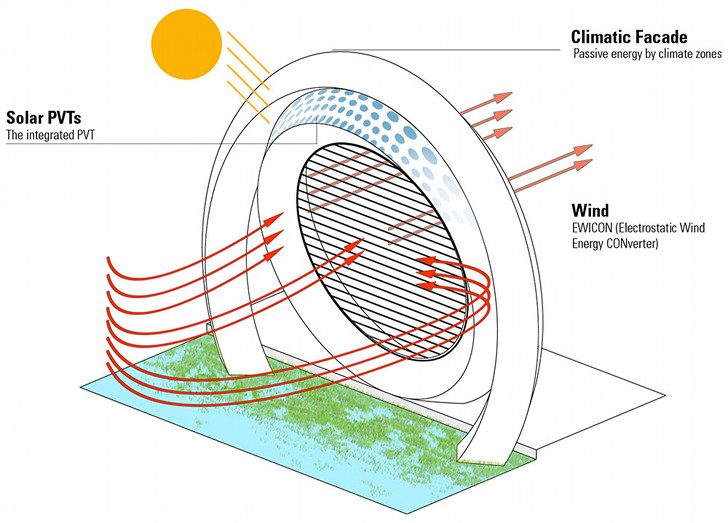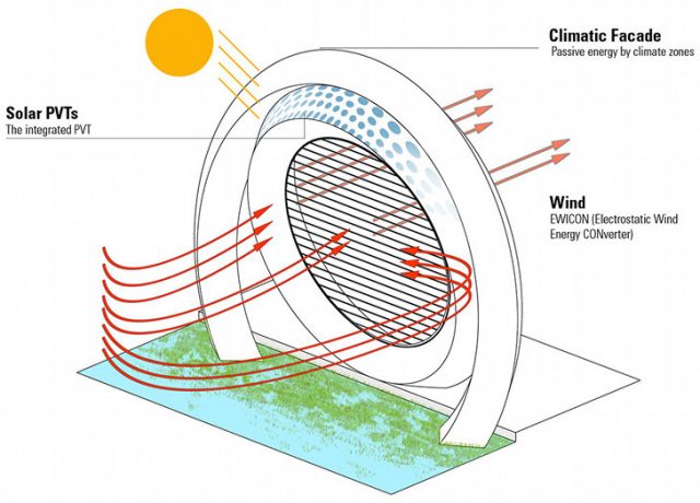 In collaborazione con lo studio Mecanoo Architects, che ha curato la progettazione, il gruppo di ricerca ha realizzato dei modelli in scala presso l’edificio 010 della facoltà di ingegneria della Delft University of Technology (TU Delft) di Rotterdam. L’aspetto dei modelli è quello di una superficie piana con una doppia struttura a griglia, capace di produrre elettricità a spese dell’energia cinetica del vento che l’attraversa. La potenza prodotta è proporzionale alla superficie e, quindi, il sistema dovrebbe essere scalabile.