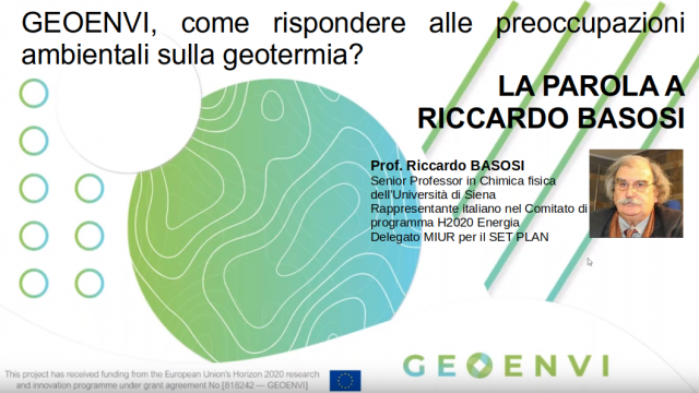 Diamo oggi la parola al prof. Riccardo Basosi, senior professor in Chimica fisica dell’Università di Siena, rappresentante italiano nel Comitato di programma H2020 Energia, delegato MIUR per il SET PLAN e membro dell’International Advisory Board di GEOENVI.