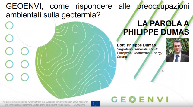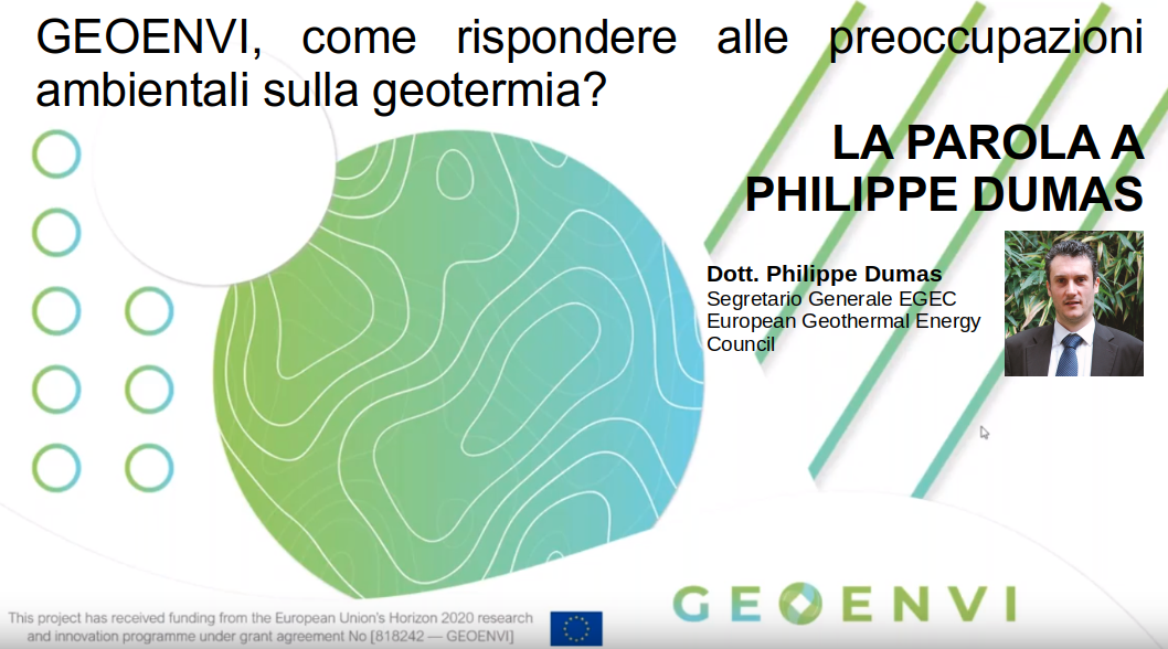 Diamo oggi la parola a Philippe Dumas, segretario generale del Consiglio europeo per l’energia geotermica (EGEC), l’ente chiamato a coordinare il lavoro dei 16 partner internazionali aderenti al progetto GEOENVI.