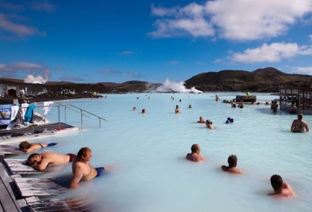 E proprio l’Islanda è tra le altre nazioni che hanno fatto della geotermia (evidentemente non solo elettrica) una vera e propria risorsa e fonte di ricchezza e benessere, addirittura impiantando -proprio nei pressi di una centrale geotermoelettrica nelle vicinanze della capitale Reykjavík-, quello che è forse lo stabilimento termale più famoso al mondo, ovvero il Blue Lagoon, così chiamato perché le acque termali, per via di una particolare alga, assumono un colore azzurro pallido che contribuisce a creare un’atmosfera magica e del tutto unica, tanto da essere incluso nel 2012 nella top 25 delle “Meraviglie del Mondo” da parte della prestigiosa rivista National Geographic.