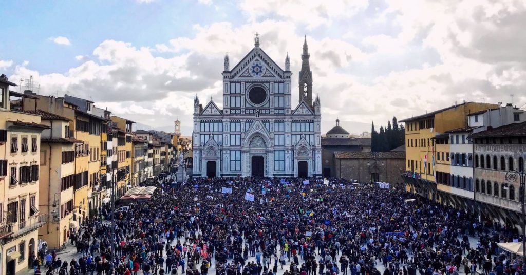 Le piazze della Toscana sono state protagoniste dello sciopero globale per il clima di venerdì scorso, con oltre 10mila persone raccolte nella sola piazza Santa Croce a Firenze (nella foto, ndr), e ora è il momento di mettere in campo azioni concrete contro i cambiamenti climatici: «La politica più che aderire deve fare», esordisce il presidente della Regione Enrico Rossi – che comunque, insieme all’assessore all’Ambiente Federica Fratoni, ha dato il proprio sostegno all’iniziativa dei giovani scesi in piazza – nel presentare gli impegni in materia di sviluppo sostenibile che caratterizzeranno quest’ultima parte della legislatura, a partire dal progetto Toscana Green 2050…continua