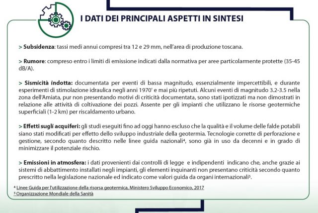 «Nondimeno molto lavoro è ancora necessario sia per aumentare la quota di energia geotermica utilizzata sia migliorando le performance ambientale degli impianti utilizzatori». Un progresso che già oggi è palpabile sui territori – nella fattispecie quelli toscani – dove la geotermia è una risorsa industriale da oltre due secoli, e impiegata per produrre energia elettrica da più di 100 anni. «Molti passi avanti sono stati già fatti – argomentano dall’Ugi – i territori toscani che ospitano gli impianti geotermici hanno assistito, negli anni, al miglioramento della qualità ambientale in conseguenza dello sviluppo di nuove tecnologie volte alla riduzione degli impatti ambientali. A conferma si possono citare i dati ambientali raccolti dall’Arpat e da alcuni comuni geotermici (come nel caso di Piancastagnaio, che si è dotato di un’apposita centralina proprio con l’assistenza del Mise, ndr), che testimoniano l’assoluta mancanza di criticità ambientali in quelle aree. Questa opinione è stata sostenuta dalle migliaia di cittadini che hanno partecipato alle manifestazioni a sostegno della geotermia nel mese scorso».