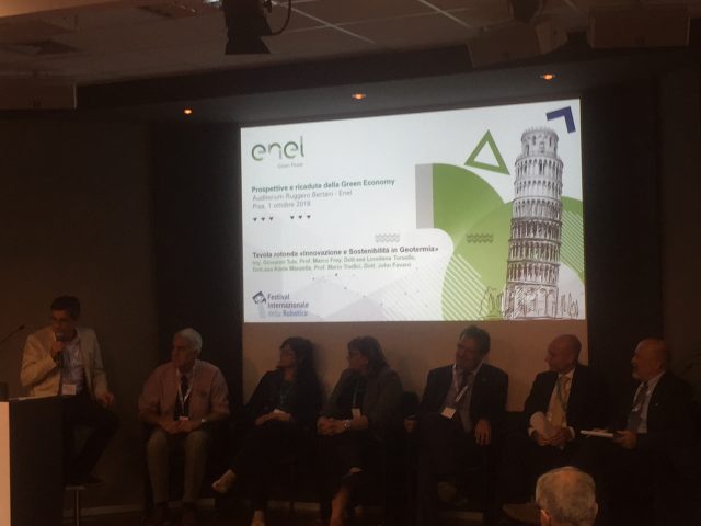 Dopo una storia industriale iniziata in Toscana – per la prima volta al mondo – esattamente due secoli fa, oggi la frontiera tecnologica della geotermia fa largo uso della robotica ed è terreno fertile per l’innovazione, tratto che del resto l’accomuna a larga parte della green economy: è dunque naturale che il Festival Internazionale della Robotica organizzato a Pisa abbia dedicato un convegno al tema Prospettive e ricadute della green economy, come spiegato dal direttore organizzativo del Festival Franco Mosca, intervenuto direttamente nel corso dell’evento organizzato non a caso nell’auditorium Enel di via Pisano, intitolato al compianto Ruggero Bertani.