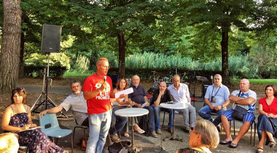 E’ arrivata a Firenze una delegazione di 5 operai, 3 che fanno parte dei 78 rimasti in forze allo stabilimento di Saline e 2 che sono fra i 114 in cerca di una ricollocazione. Alessio Ticciati nel suo intervento ha illustrato la vicenda, ripercorrendone le tappe principali. Poi, come riportano le nuove maglie rosse, ha ricordato che la politica e le istituzioni dovranno mantenere le promesse: ci sono da ricollocare oltre 100 persone in un territorio difficile come quello della Valdicecina. Ticciati ha concluso il suo intervento citando il presidente partigiano Sandro Pertini.