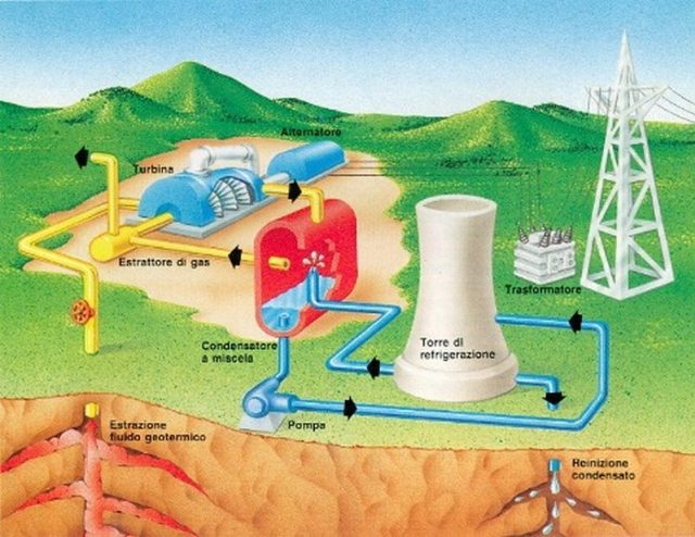 LE DUE TIPOLOGIE – Il vapore raccolto dal sottosuolo, come detto, viene convogliato attraverso delle turbine poste all’interno delle centrali geotermiche. Il vapore fa muovere le turbine che generano così energia meccanica che viene trasformata in energia elettrica tramite un alternatore. I sistemi possono essere di due tipi, a vapore dominante o ad acqua dominante. Nel primo caso il vapore è determinato dall’alta temperatura, mentre nel secondo l’acqua rimane allo stato liquido qualora il vapore non raggiunga una temperatura sufficiente. In questo caso il calore viene usato per impianti di teleriscaldamento. Ed a conferma del ruolo da pioniere dell’Italia nello sfruttamento dell’energia del sottosuolo, è opportuno ricordare che il nostro Paese ospita la prima centrale geotermica del mondo e l’impianto più grande d’Europa ad uso abitativo.