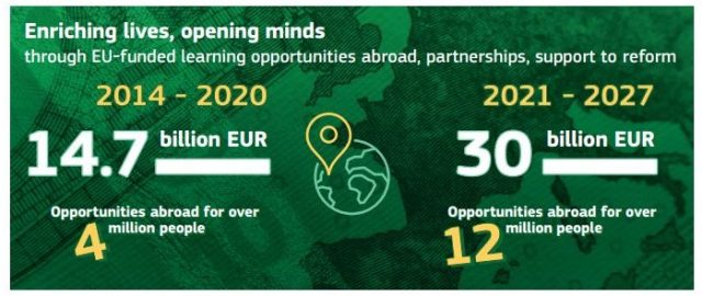 Il Parlamento europeo aveva anche ribadito l’importanza di accordare al futuro Programma una maggiore dotazione di bilancio, in modo da rafforzarlo, ampliarlo e renderlo più inclusivo, intensificando la mobilità e gli scambi, fornendo ai giovani le competenze necessarie sul mercato del lavoro, migliorando la comprensione culturale e il tessuto sociale dell’Unione. Per questo motivo a maggio scorso la Commissione ha proposto "un programma Erasmus+ potenziato, con una dotazione di 30 miliardi di Euro per il periodo 2021-2027"…(continua)