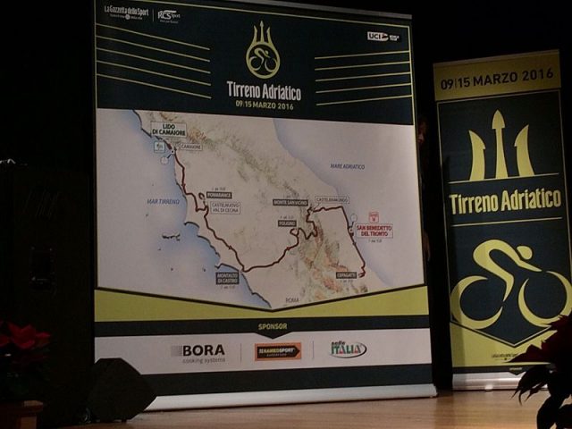 RCS Sport ha svelato questa mattina, 21 Dicembre, a Camaiore (Lucca) le tappe della Tirreno-Adriatico 2016, corsa a tappe WorldTour in programma dal 9 al 16 marzo.