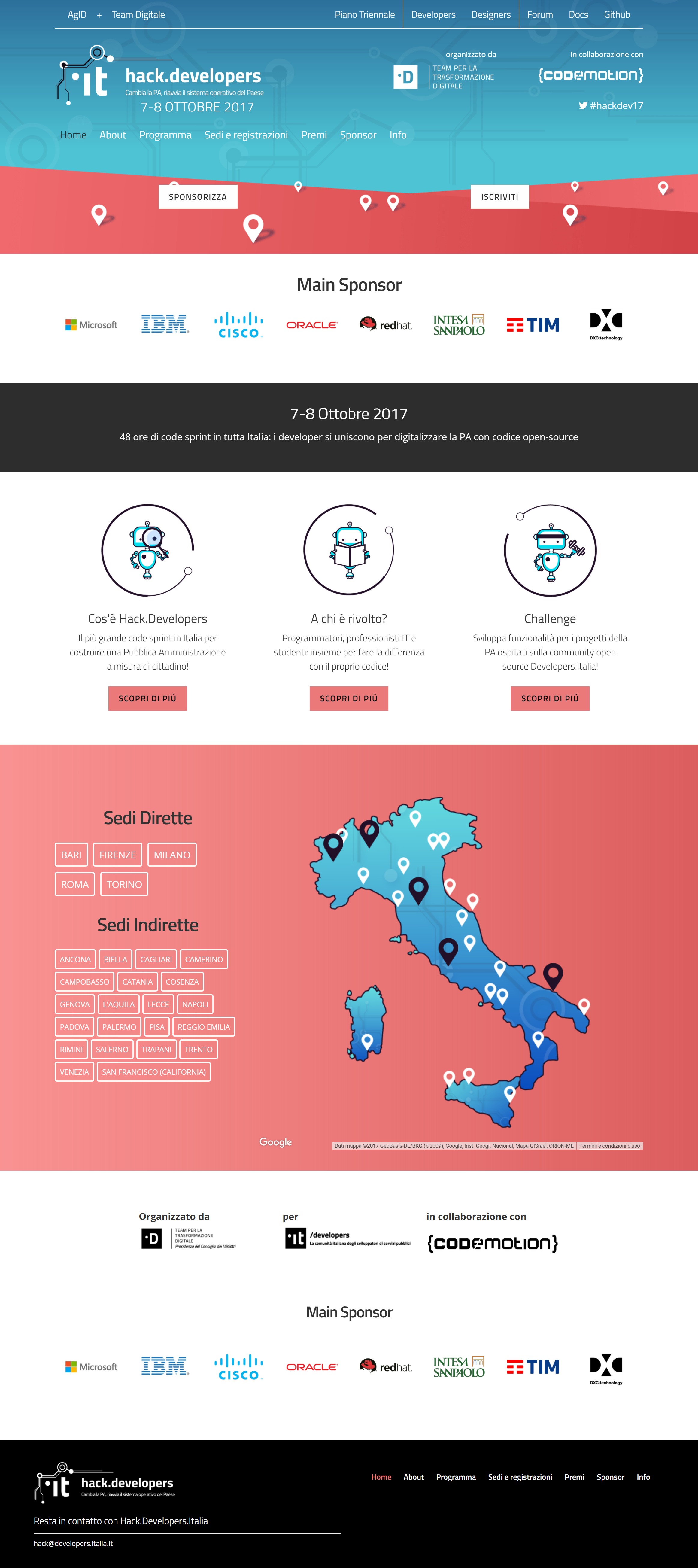 Per maggiori info sulle altre sedi, le challenge, le tecnologie, i premi, gli sponsor dell’iniziativa e molto altro consulta il sito.