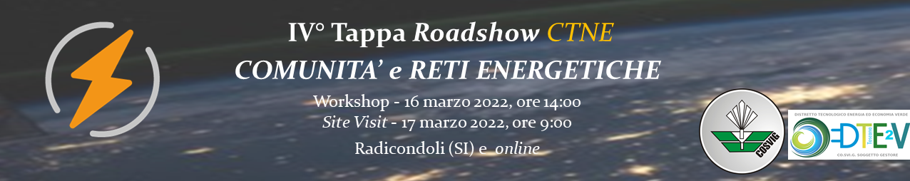 Si svolgerà il 16 e 17 Marzo a Radicondoli (SI), il quarto appuntamento del Roadshow Tematico promosso dal Cluster Tecnologico Nazionale Energia (CTNE), in collaborazione con il Comitato degli Organismi Territoriali tra i quali Co.Svi.G.- DTE2V, dedicato a promuovere e supportare la cooperazione energetica.