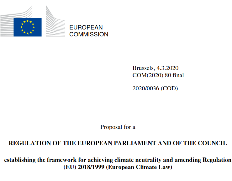 La Commissione Europea ha avanzato una proposta di legge sul clima, incentrata sull’obiettivo – giuridicamente vincolante – di rendere l’UE climaticamente neutra entro il 2050: questo significa ridurre drasticamente le emissioni di gas serra, in modo che la capacità di assorbimento degli ecosistemi locali sia sufficiente a compensare tutta la CO2eq che gli europei rilasciano in atmosfera.