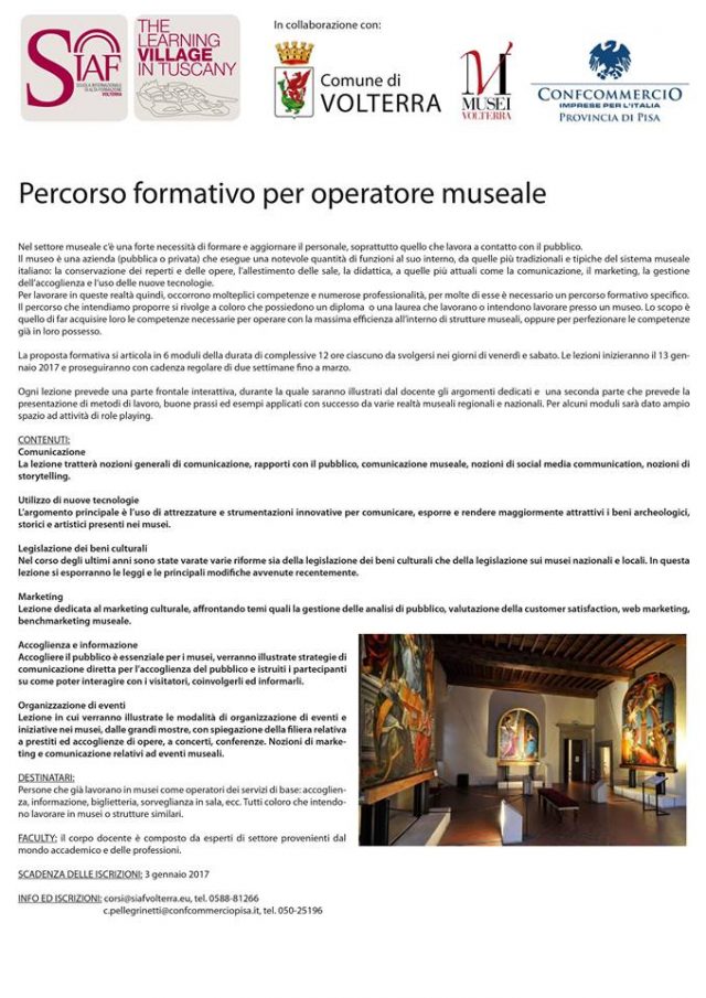 INFO & ISCRIZIONI: corsi@siafvolterra.eu tel. 0588 81266