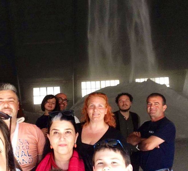 (Nella foto del sopralluogo operativo effettuato alla Salina di Saline di Volterra: Cinzia de Felice direttore organizzativo del Festival VolterraTeatro, Enrica Sangiovanni e Gianluca Guidotti, registi della Compagnia Archivio Zeta, Yuri Ghionzoli dell’Associazione salinese AC Giovanile Valdicecina, Alessandro Del Viva vicedirettore della Salina, Carlo Gattai direttore tecnico del Festival VolterraTeatro)