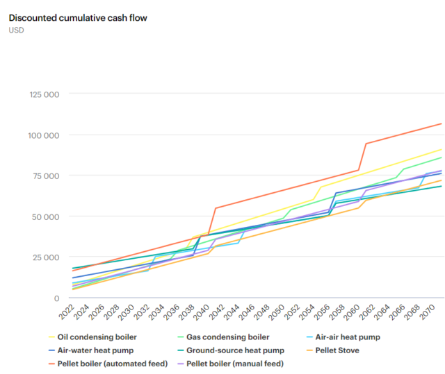 Basandosi su dati 2019 – dunque ben lontani dall’attuale impennata dei prezzi del gas che sta gonfiando le bollette italiane, rendendo la scelta geotermica ancora più conveniente –, la IEA ha confrontato varie fonti energetiche (sia fossili sia rinnovabili) per la fornitura di calore, confrontando tra loro i vari costi in una prospettiva che tenga conto dell’intero ciclo di vita dell’impianto e non solo del prezzo d’acquisto.