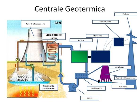 Da qui il calore si propaga fino alle rocce prossime alla superficie, dove può essere sfruttato essenzialmente in due modi diversi. Per temperature superiori ai 150 °C si definisce alta entalpia, attraverso la quale è possibile produrre energia elettrica tramite una turbina a vapore (centrale geotermoelettrica). Sono 372, in Italia, i Comuni della geotermia, tra alta e bassa entalpia, rilevati dal rapporto di Legambiente “Comuni Rinnovabili 2014”, per una potenza totale di 814 MW elettrici, 257 MW termici e 3,4 MW frigoriferi.