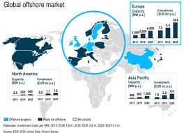 Nel 2013 risultano installati circa 7 GW di eolico off shore nel mondo, con un incremento di circa il 50% rispetto al 2012; la maggior parte degli impianti sono stati realizzati nell’Europa Nord Occidentale ma sono previsti sviluppi importanti in Cina e negli Usa.