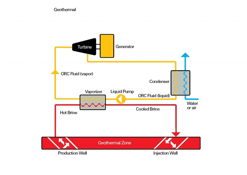 Con i progetti geotermici pilota “Lucignano” e “Cortolla” si prevede di sperimentare le tecnologie utili ad ottenere un efficace sfruttamento della risorsa mediante l’installazione di impianti di conversione di energia a ciclo binario (Organic Rankine Cycle, ORC). I cicli binari consentono una più versatile utilizzazione dei serbatoi geotermici caratterizzati da fluidi non interessanti dal punto di vista dei tradizionali impianti geotermoelettrici (a vapore secco, a flash o comunque ad espansione diretta), ma con un contenuto energetico non trascurabile.