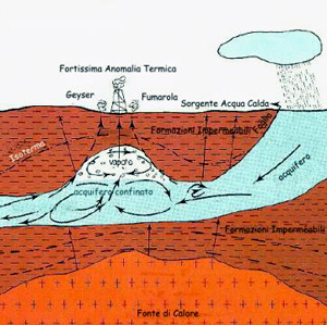 Nel caso ideale, la fonte di calore è ubicata in zone di vulcanismo attivo o geologicamente recente, rocce fratturate permettono l’infiltrazione di acque da un bacino di alimentazione sufficientemente esteso, la copertura è data da rocce caratterizzate da sostanziale impermeabilità.