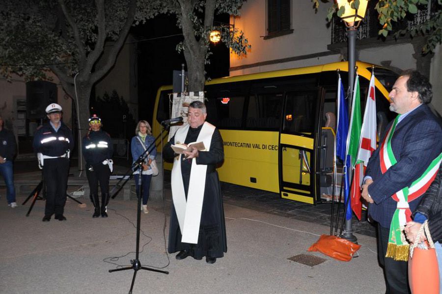 In occasione della tradizionale Fiera di Montecatini, ieri sera, 9 settembre, alle ore 21,30, è stato presentato ai cittadini il nuovo Scuolabus acquistato dall’amministrazione comunale di Montecatini Val di Cecina.