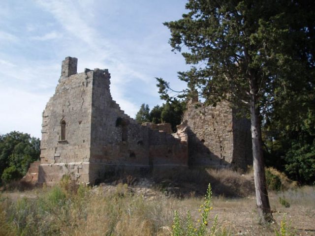 Nel corso degli anni, infatti, la macchia ha stretto d’assedio la chiesa e quel che resta del chiostro; sono cresciuti alberi alti dentro e attorno, al punto che da lontano sono visibili solo i resti del campanile, pur essendo il monastero costruito in posizione dominante.
