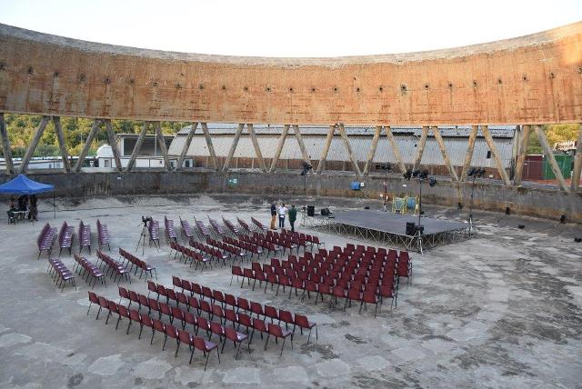 Grazie al Comune di Pomarance e a EGP, all’interno della vecchia torre di raffreddamento è stato realizzato uno spazio per spettacoli a cielo aperto, che può contenere fino a 300 persone