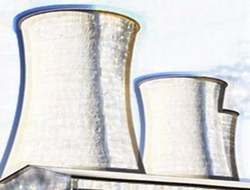 larderello 31,12,11 ciminiere di centrale elettrica con cielo blu'