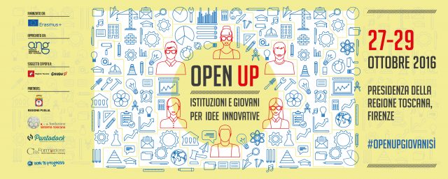 Da giovedì 27 a sabato 29 ottobre 2016 la Presidenza della Regione Toscana (Piazza Duomo 10, Firenze) ospiterà il seminario di “OPEN UP “, progetto di Giovanisì finanziato da Erasmus+, a cui parteciperanno oltre 60 giovani e rappresentanti istituzionali provenienti da Toscana, Emilia-Romagna e Puglia (selezionati con una call).