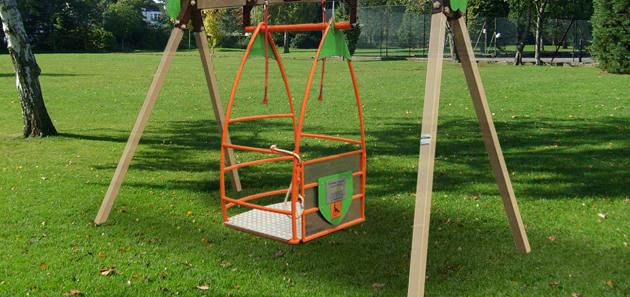 La cesta è dotata di una rampa di accesso per la carrozzina e che funge anche da sportello di chiusura delle cinghie e di una fune per generare l’oscillazione. Il corretto utilizzo ed il rispetto delle norme di sicurezza, è scritto su un apposito pannello, installato su un totem, ben visibile accanto al gioco.