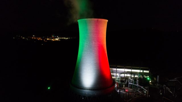 Dopo l’illuminazione ad aprile delle torri di raffreddamento degli impianti geotermici di Larderello e Castelnuovo Val di Cecina, dalla notte appena trascorsa in occasione della Festa della Repubblica anche la centrale Enel Green Power di Gabbro risplende con il tricolore grazie ad un progetto promosso da Enel Green Power e Amministrazione Comunale di Pomarance.