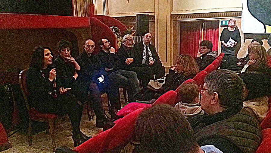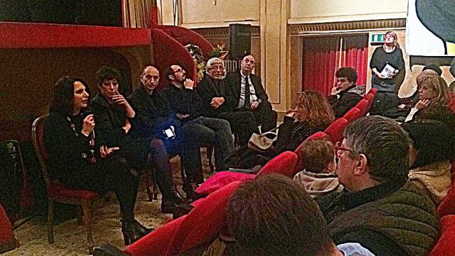Numeroso e coinvolto il pubblico presente, giunto anche da molto lontano, che ha affollato il teatro in ogni ordine e grado e che poi ha attraversato tutto il centro storico fino a giungere nella bellissima chiesa di San Giovanni Battista nello storico quartiere del Marzocco. La mostra che ha infatti letteralmente invaso tutta Pomarance, a partire dalla bellissima istallazione nel Teatro dei Coraggiosi, fatta di grandi tele posizionate tra i palchi e sul palcoscenico e da un suggestivo e commovente montaggio sonoro dal quale sono emerse tra i ricordi, le voci graffianti di Carmelo Bene e Anna Magnani.