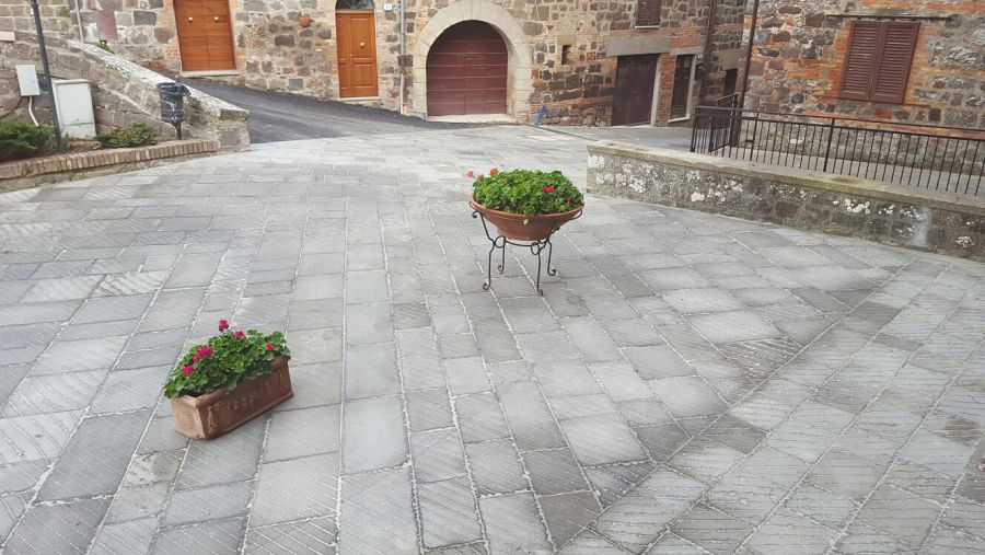 E’ stata poi recuperata parte recuperata della vecchia pietra, la quale è stata inserita sostituendo completamente il manto di asfalto che ricopriva il tratto di fronte al palazzo comunale.