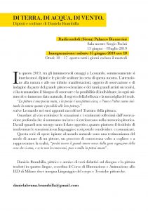 Si terrà Sabato 15 Giugno 2019 alle ore 18.00, presso la Sala Mostre “Sergio Pacini”, in Via Tiberio Gazzei 24 a Radicondoli l’inaugurazione della mostra “Di Terra, di Acqua, di Vento”, dipinti e sculture di Daniele Brambilla.